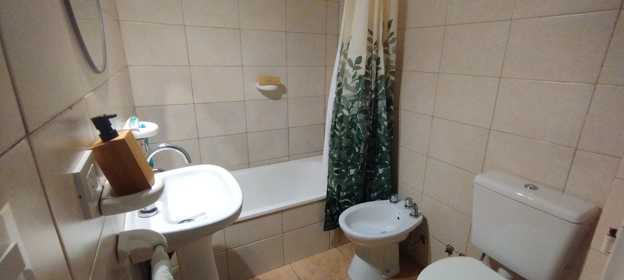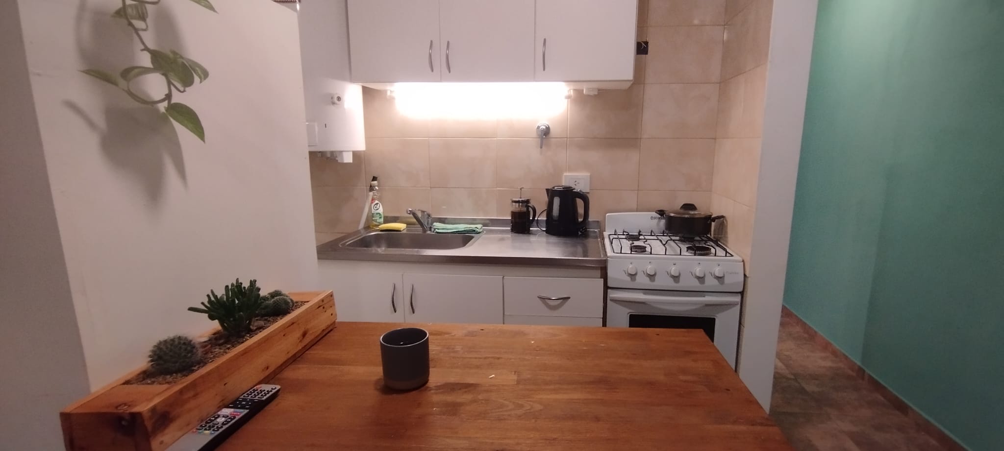 1 dormitorio, baño completo con bañera, cocina-living-comedor con bajo mesada, cochera descubierta