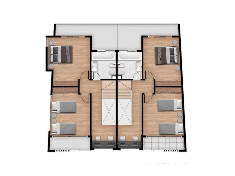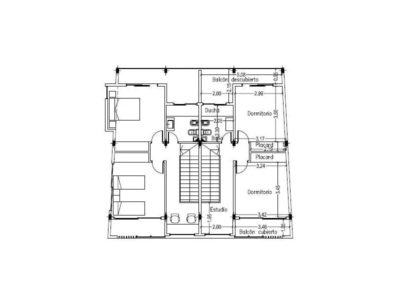 PA: 2 dormitorios, sector home office con 2 espacios de trabajo, 1 baño, 2 balcones (uno al frente y otro contra frente)